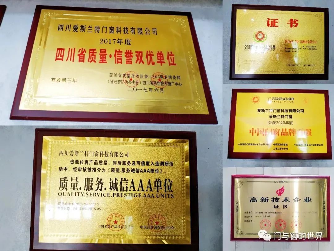 据了解,爱斯兰特门窗是四川爱斯兰特门窗科技有限公司旗下品牌,以“爱斯兰特门窗、更懂您的生活”为理念,致力于为更多家庭提供建筑门窗系统解决方案,是一家集新型门窗、阳光房建材产品研发、设计、生产、销售和售后服务为一体的现代化创新型企业。公司致力于打造中国门窗企业标杆品牌,先后与成都建工、中国中铁、华西建筑等众多公司建立了长期合作关系。目前,公司拥有经销商100余家,服务过多家中大型企业及上万家家装客户。同时,荣获《四川省科技型中小企业》、《国家级高新技术企业》、“中国门窗百强家装门窗”、“技术研发创新品牌”、“行业影响力TOP品牌”、“中国门窗行业新锐品牌”、“中国门窗品牌百强”、四川门窗推荐品牌等荣誉称号。